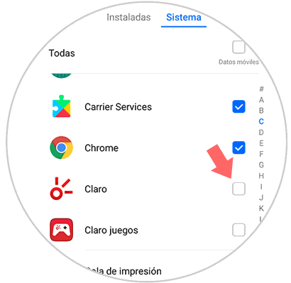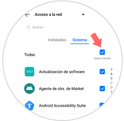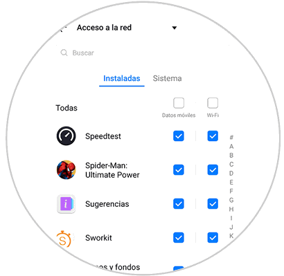 Al igual que el proceso anterior, para evitar el acceso de alguna de estas cuando usamos datos móviles basta con desactivar la casilla respectiva: