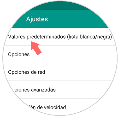 Si vas al menú de NetGuard (tres puntos verticales en la parte superior derecha), seleccionamos Ajustes y veremos lo siguiente. En la sección “Valores predeterminados (lista blanca/negra) será posible activar o no el acceso a la red Wi-Fo o red móvil, permitir el uso de Wi-Fi y red móvil con la pantalla encendida y más opciones: