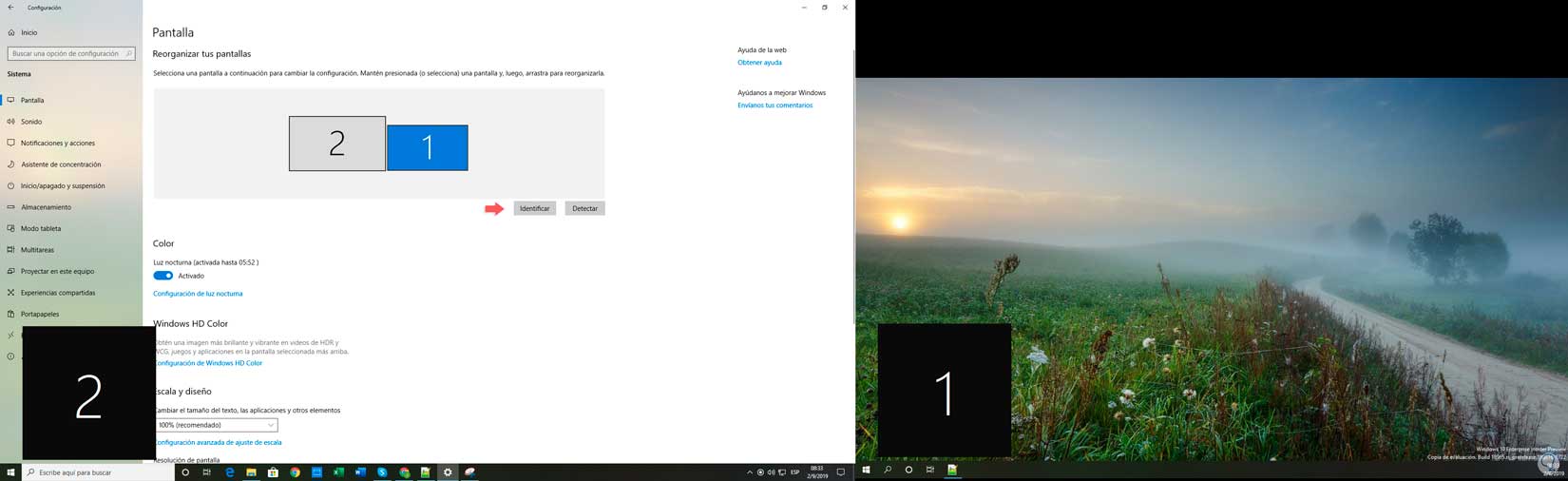 Por regla general trabajamos con dos monitores (a no ser que trabajes en Wall Street) y el primer punto es identificar los monitores ya que Windows 10 los cataloga como Monitor 1, Monitor 2 etc