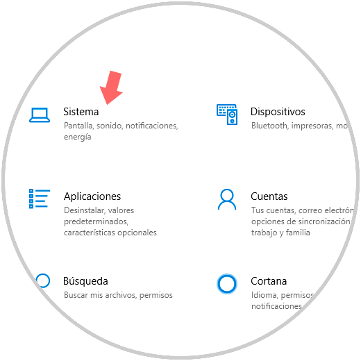 Para esto iremos al menú Inicio y allí seleccionamos la utilidad “Configuración” donde veremos lo siguiente. Allí seleccionamos la categoría “Sistema”.