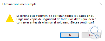 Damos clic en el botón Sí para confirmar la acción y después de que el proceso se complete veremos que dicho espacio queda sin asignar: