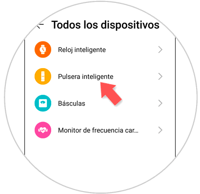 Selecciona el tipo de dispositivo que quieres conectar. En este caso la Honor Band 5 se trata de una pulsera inteligente.