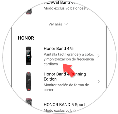 En el listado de “Honor”, selecciona “Honor Band 4/5”.