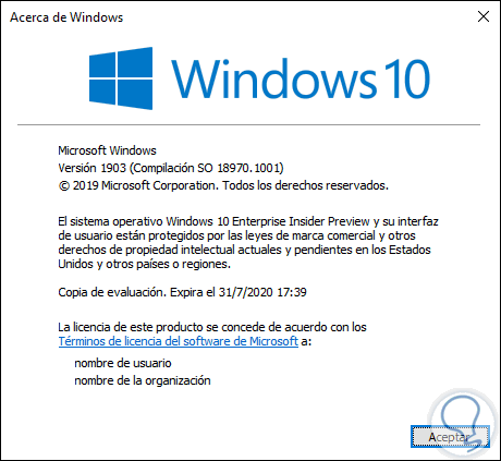 Solvetic te explicará cómo llevar a cabo este proceso y para ello debes usar la versión 18963 o una versión posterior de Windows 10. Para poder comprobar que versión es la que tienes instalada en tu ordenador, puedes hacerlo usando las teclas Windows + R y ejecutando el comando “winver”: