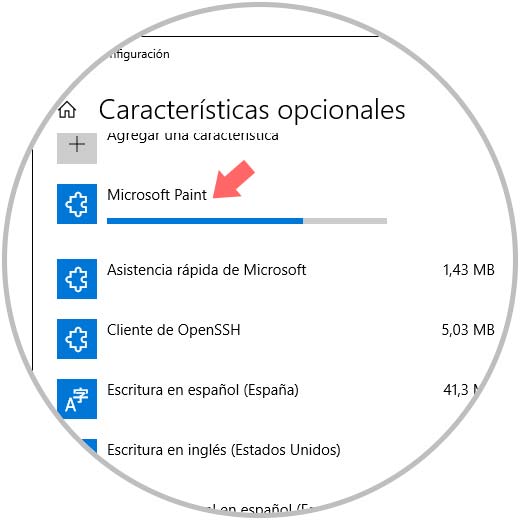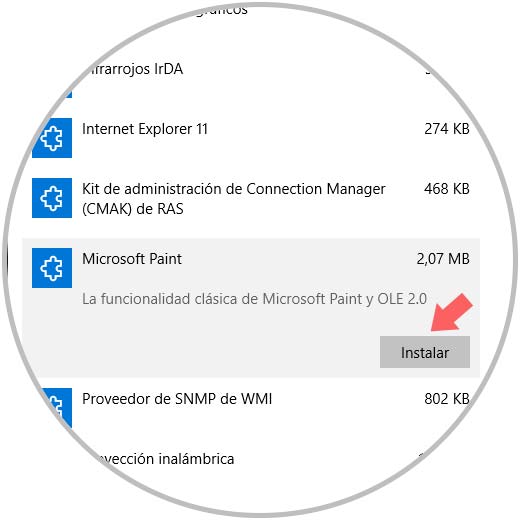 En la siguiente ventana ubicamos Microsoft Paint y al dar clic sobre él se habilitará la opción “Instalar”: