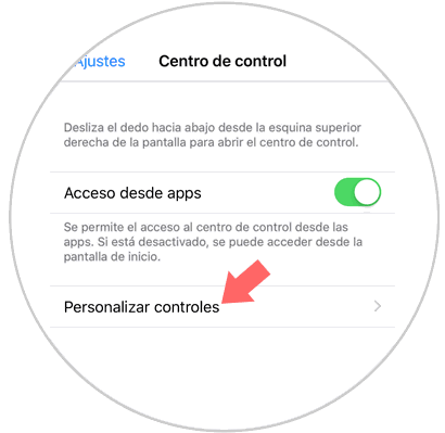 Para iniciar el proceso debemos ingresar al centro de control desplazando la pantalla desde la esquina izquierda superior hacia abajo.