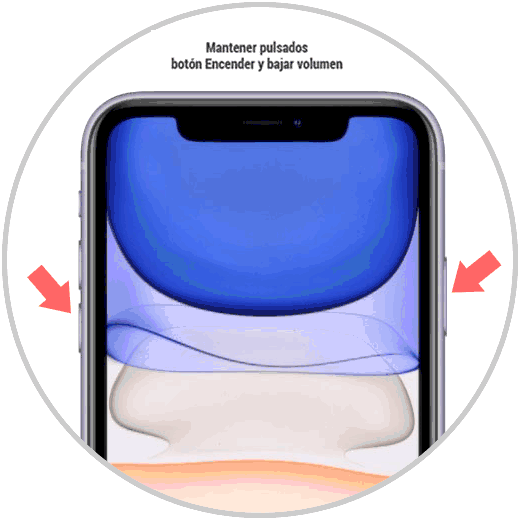 Verás que la pantalla se queda en negro. Mientras presionas este botón, pulsa también el botón de bajar volumen, manteniendo estos dos al mismo tiempo.