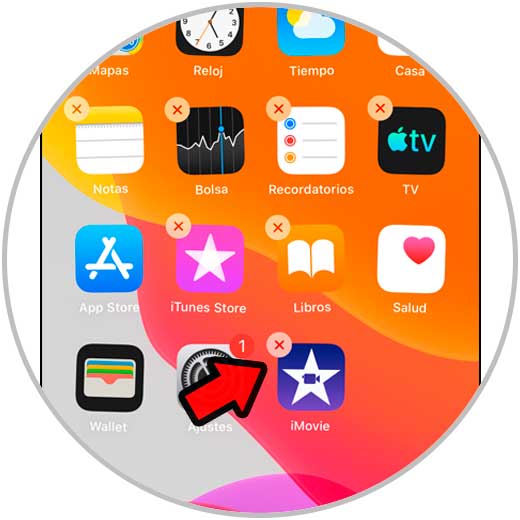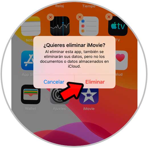 A continuación, pulsaremos sobre el icono de la equis de la aplicación en cuestión y nos saldrá un cartel donde podemos confirmar la opción de “Eliminar”.
