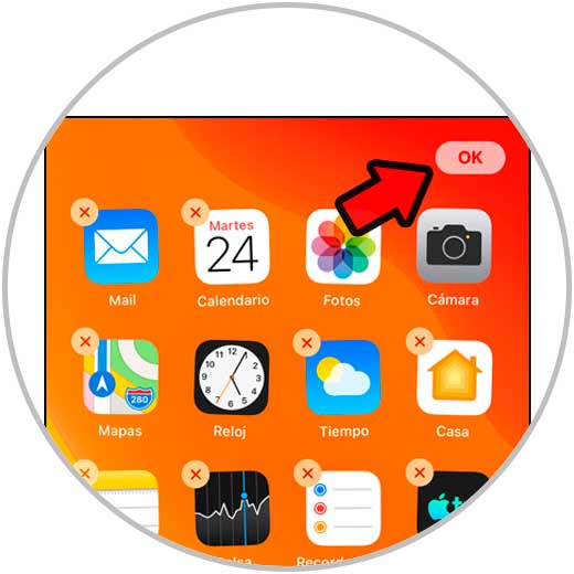 Confirma la eliminación de la aplicación y después pulsa en el Ok de la parte superior derecha para confirmar o bien desliza la pantalla de abajo hacia arriba.