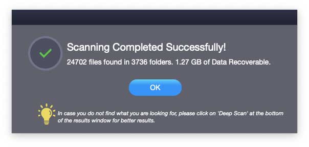 Una vez el proceso llegue a su fin veremos el siguiente mensaje donde se indica la cantidad de archivos recuperados así como su tamaño:
