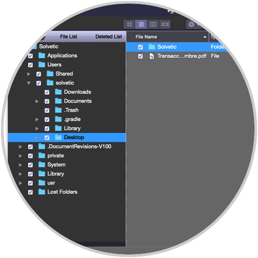 Allí podremos navegar por las diferentes carpetas para ubicar los elementos que deseamos recuperar: