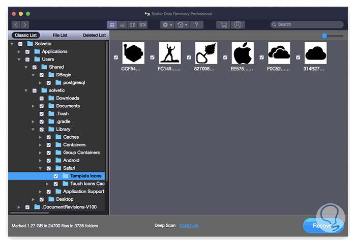 Para recuperar elementos con Stellar Data Recovery Professional for Mac debemos activar las casillas de los objetos deseados y en la parte inferior veremos la cantidad de elementos seleccionados así como su tamaño: