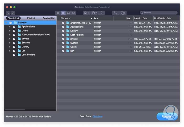 - Stellar Data Recovery nos permite recuperar archivos desde múltiples sistemas de archivo como APFS, HFS, HFS+, FAT, ex-FAT, o NTFS con lo cual la búsqueda será completa e integral.