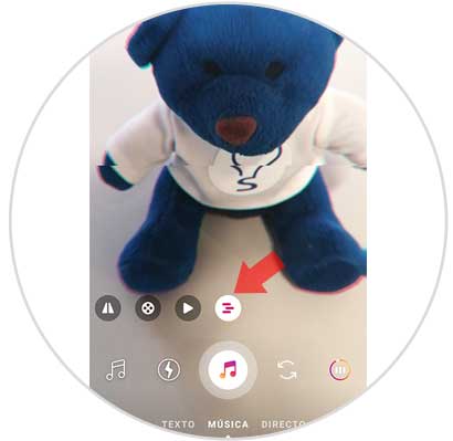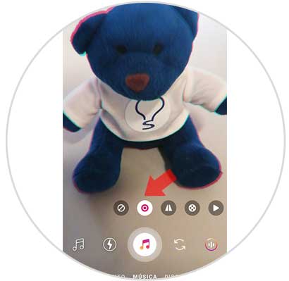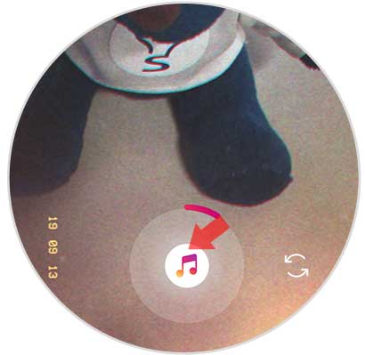 Una vez que has seleccionado el tema que te gusta, tienes que mantener presionado el icono de música para grabar el vídeo.