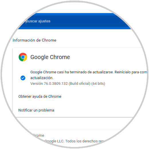 Una vez el navegador sea actualizado debe ser reiniciado para completar el proceso: