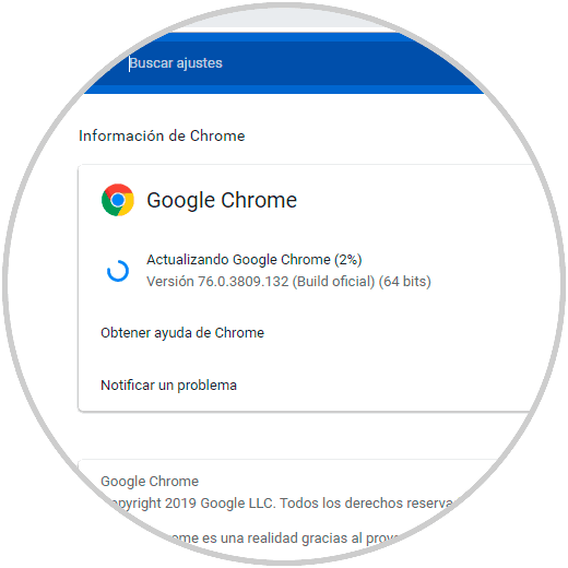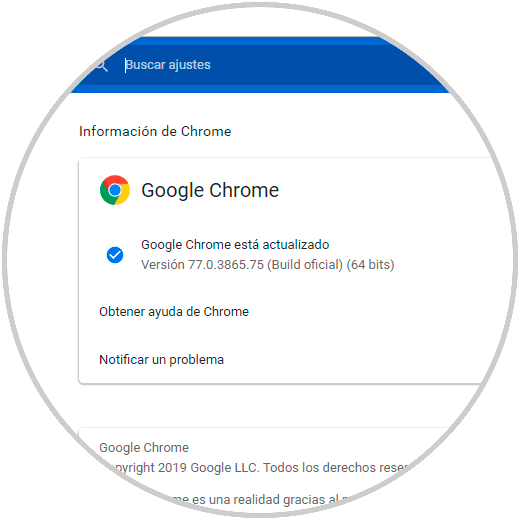 Damos clic en el botón Reiniciar y luego de esto validamos que usemos la versión 77 de Google Chrome: