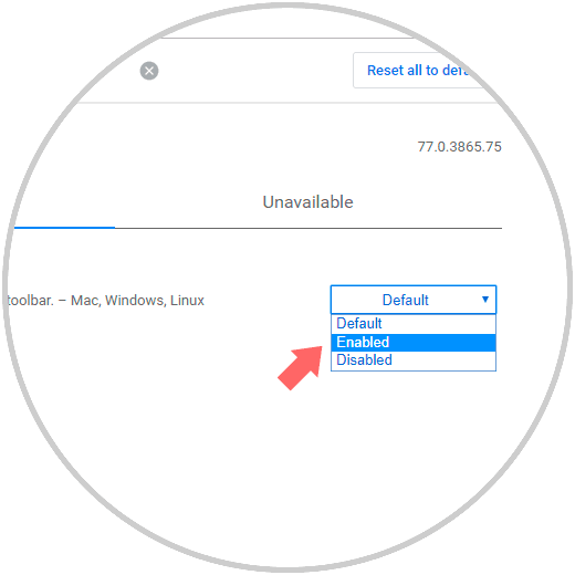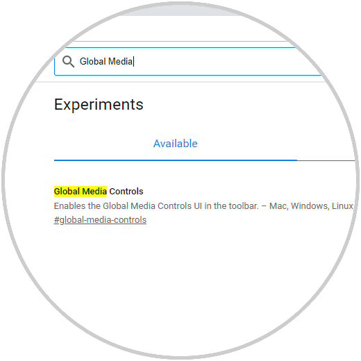 Como vemos el resultado nos arroja la opción “Global Media Controls” cuyo valor establecido es Default (Deshabilitado), allí pulsamos en el campo desplegable y seleccionamos Enabled: