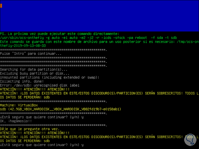 Allí pulsamos la tecla Enter para continuar y luego debemos confirmar lo siguiente: