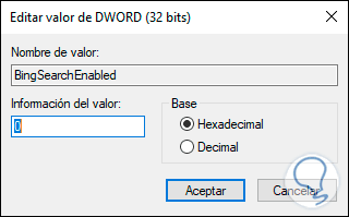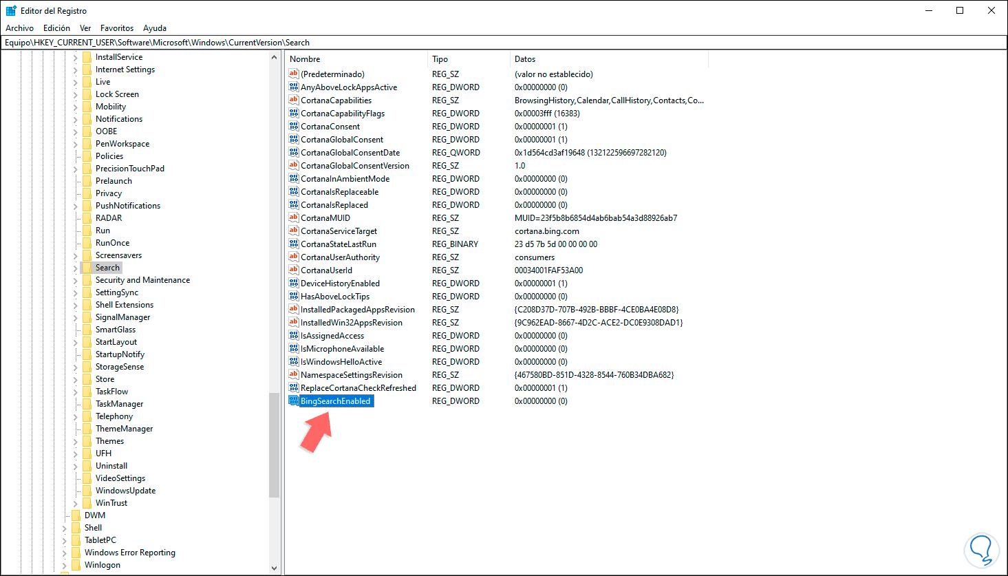 Este nuevo valor DWORD será llamado “BingSearchEnabled”: