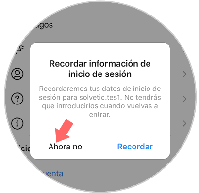 Verás que aparece una ventana emergente en la que se te pregunta si quieres recordar la información de inicio de sesión. Debes seleccionar "Ahora no"