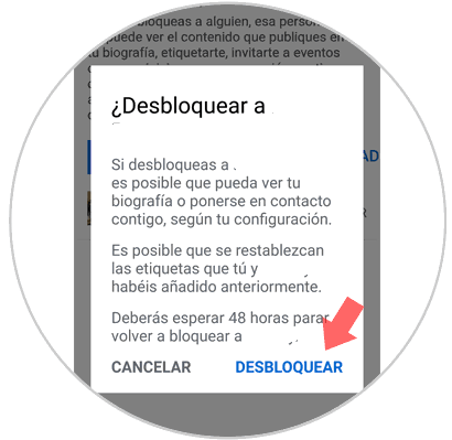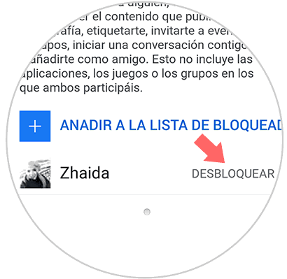 Aquí verás todas las personas que hayas bloqueado. Selecciona “Desbloquear”