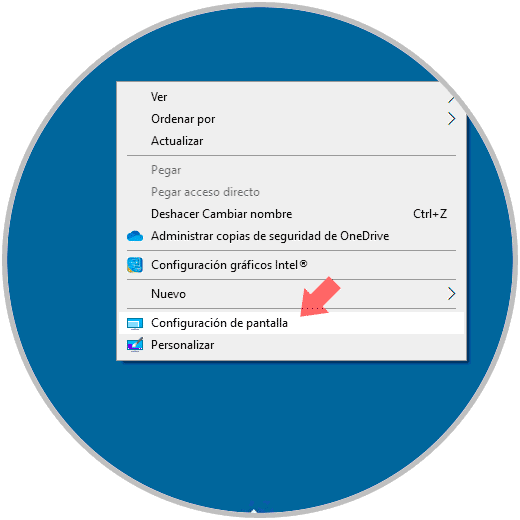 Si deseamos una configuración más personalizada debemos dar clic derecho sobre el escritorio y allí seleccionar la opción “Configuración de pantalla”: