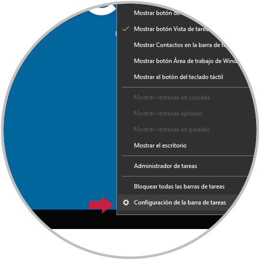 Desde la barra de tareas tenemos la posibilidad de anclar iconos para acceder a aplicaciones y programas, para editar estos tamaños daremos clic derecho sobre la barra de tareas y seleccionamos la opción “Configuración de la barra de tareas”: