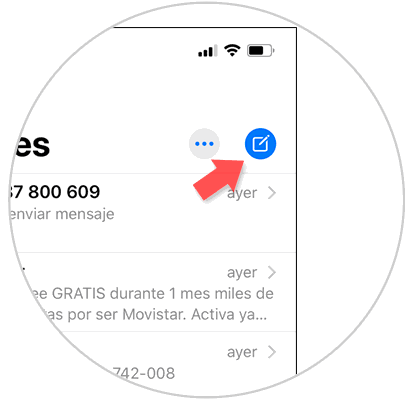 Selecciona la opción “Nuevo mensaje” representada por un icono azul ubicado en la esquina superior derecha. Pulsa sobre éste para crear un nuevo mensaje.