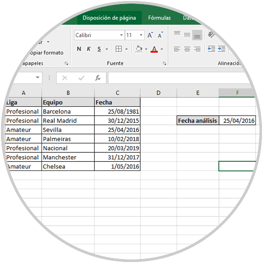 Para este ejemplo tenemos un rango de fechas en la columna C y tomaremos una fecha base (celda F3) con el fin de comparar que fechas son mayores a esta: