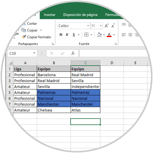 7. Cómo comparar las columnas y resaltar las coincidencias en Excel 2019