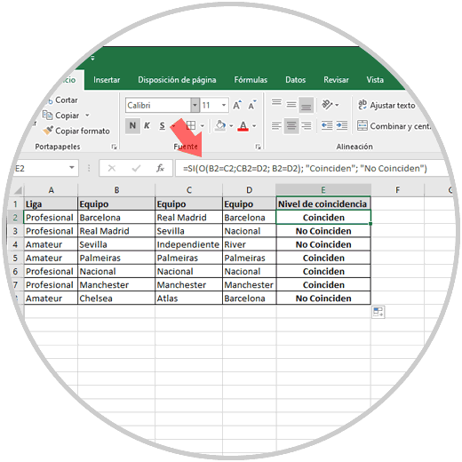 Excel 2019 nos da la oportunidad de encontrar coincidencias al menos en dos celdas de una misma fila mas no de forma general en todas las celdas del libro, para esto debemos combinar las funciones Si y O así: