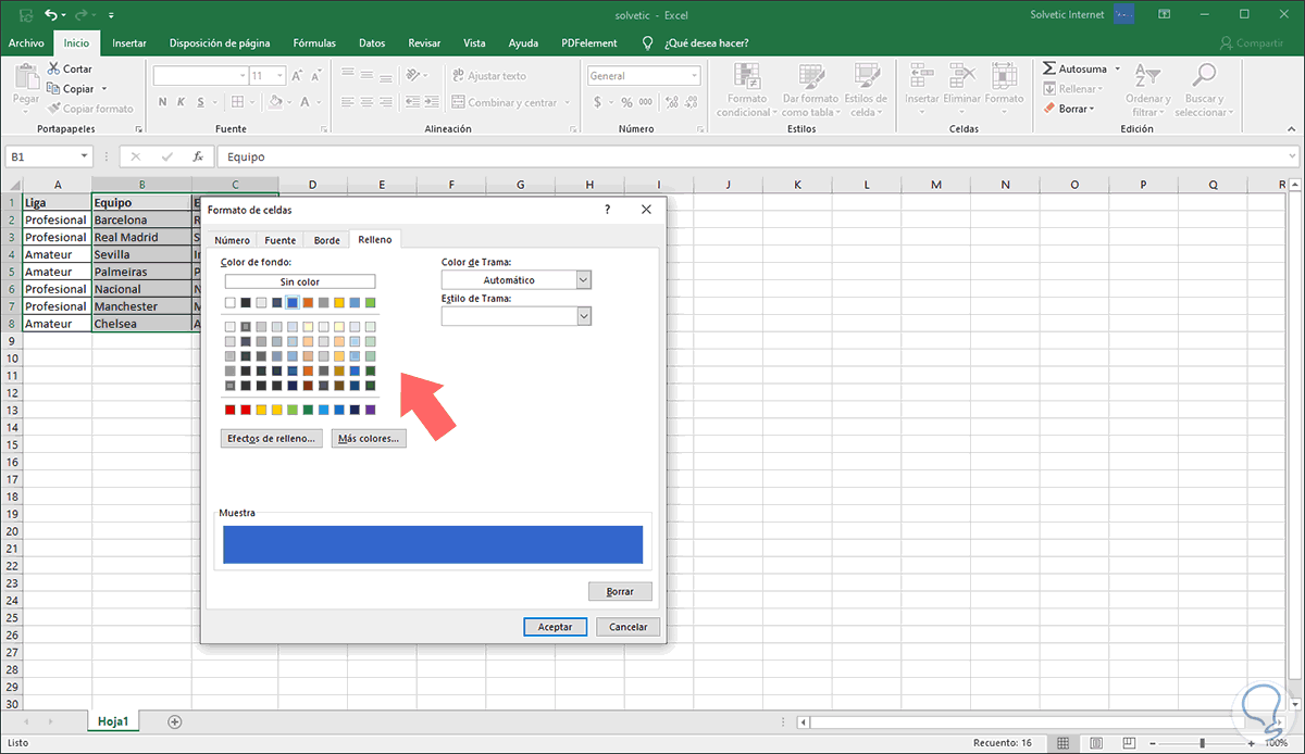 Para establecer el resaltado, damos clic en Formato y luego elegimos el color deseado desde la pestaña “Relleno”: