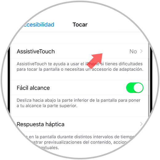 Ahora verás la opción de “Assistive Touch”, la cual puedes activar o desactivar pulsando en el botón.