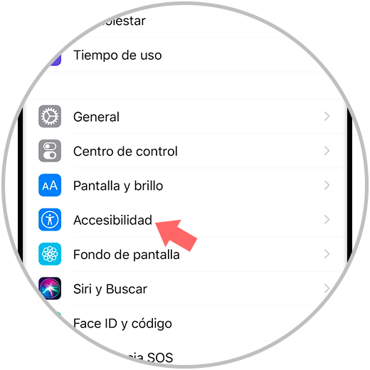 A continuación entraremos dentro del menu principal de “Accesibilidad” desplazándonos hacia abajo.