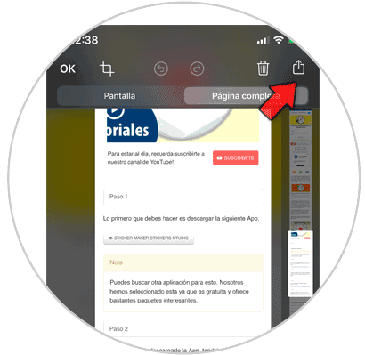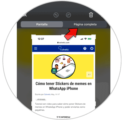 Una vez aquí, verás el editor de capturas de iPhone. En la parte superior tendrás que pulsar la opción “Pantalla completa”.