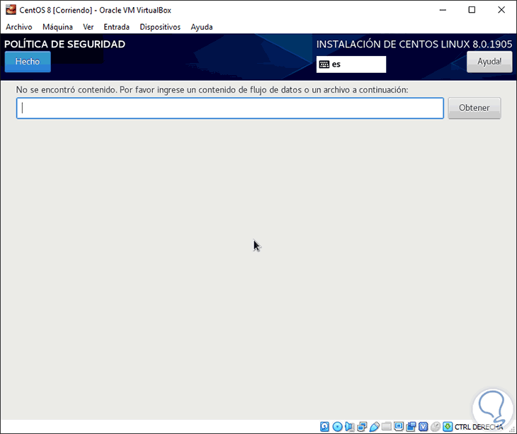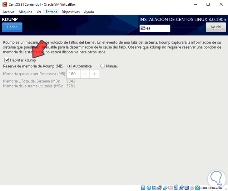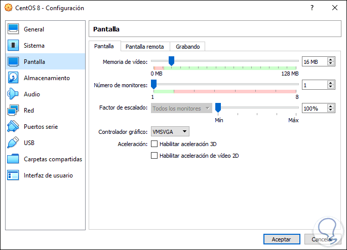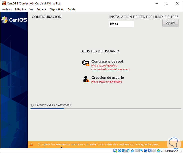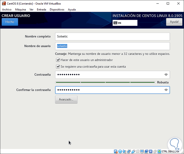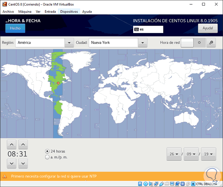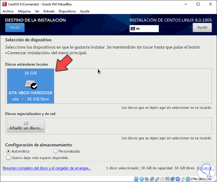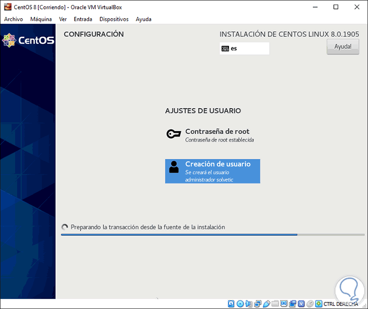 Con esto configurado podemos pulsar en Aceptar para proceder con la configuración de CentOS 8.
