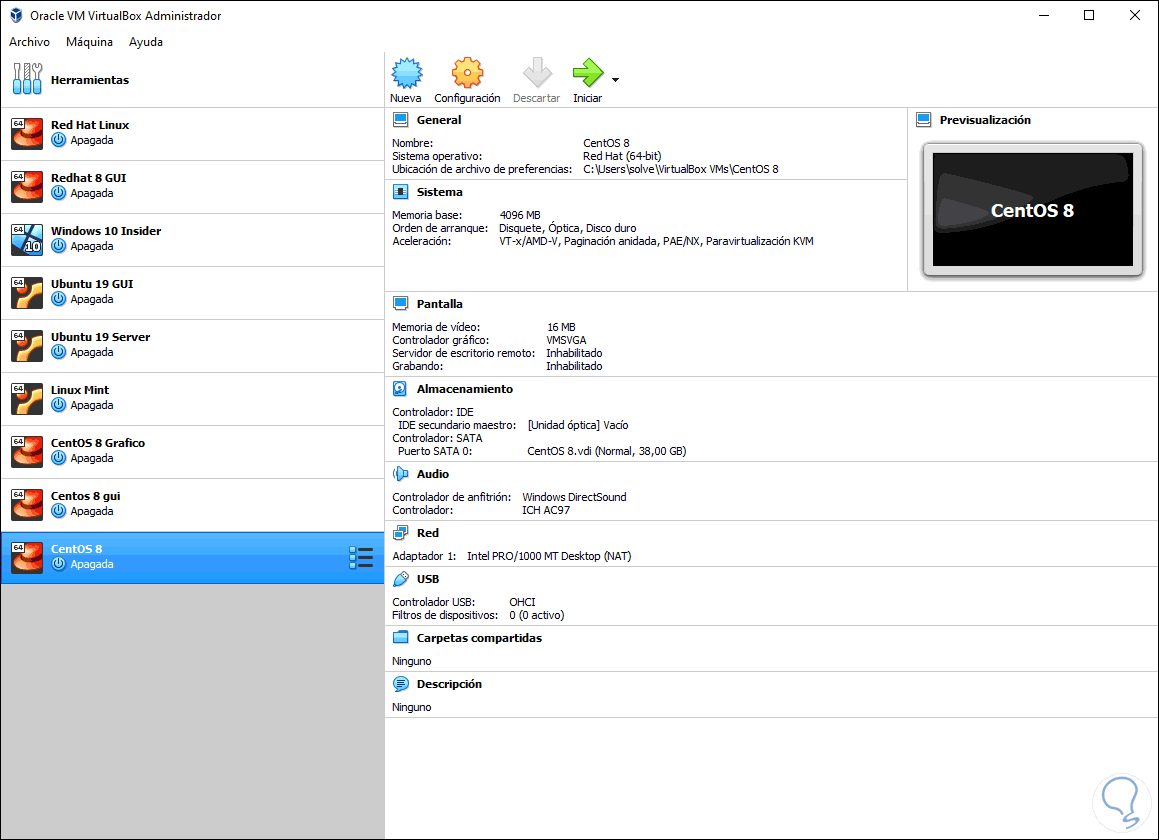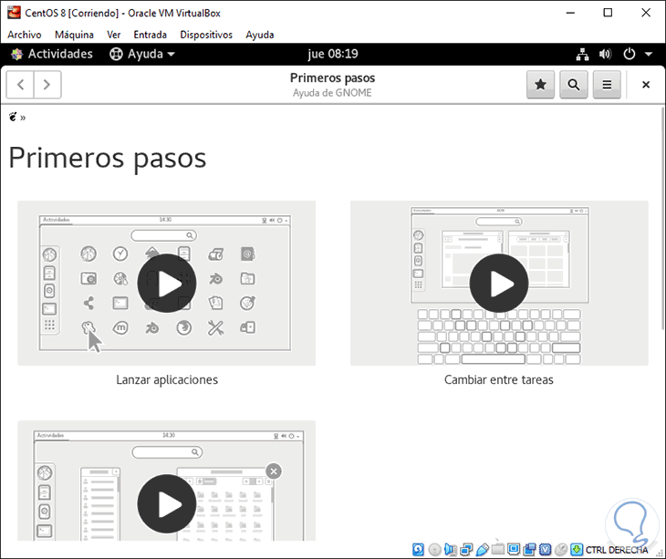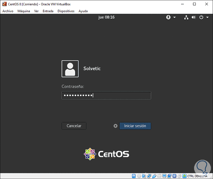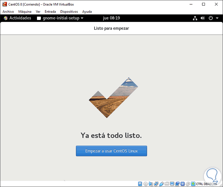 A partir de ahora estamos listos para usar CentOS 8 en VirtualBox.