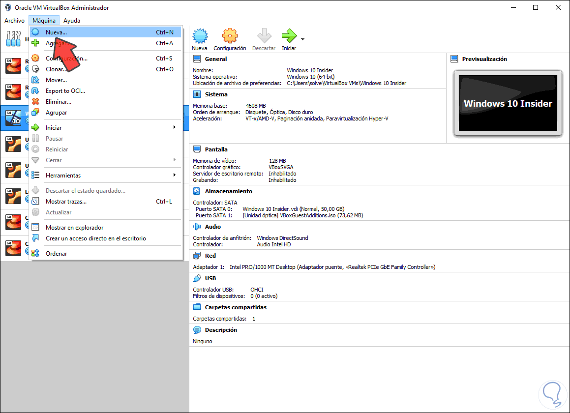 Para dar inicio a este proceso, accedemos a VirtualBox y allí podemos crear nuestra máquina virtual usando alguna de las siguientes opciones: