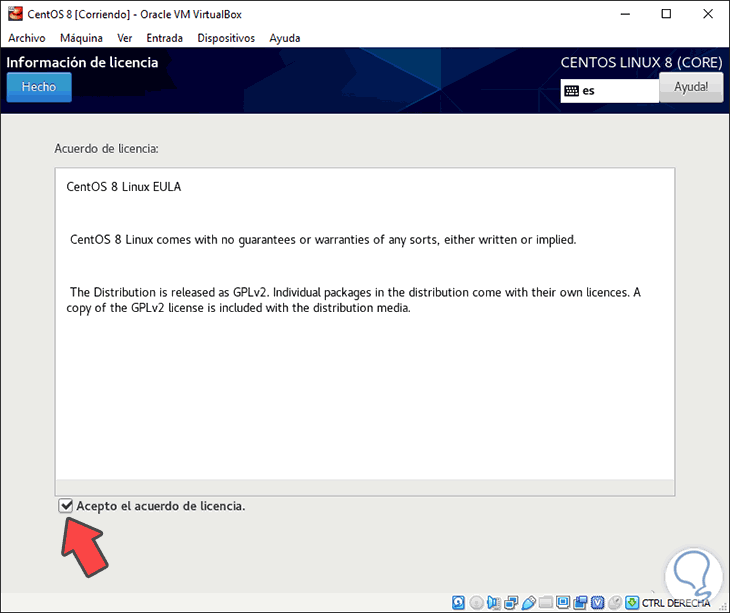 A continuación activamos la casilla “Acepto el acuerdo de licencia”: