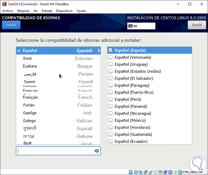 En Soporte de idiomas será posible agregar más idiomas a CentOS 8: