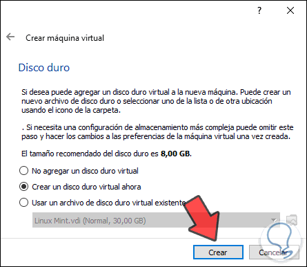 - Crear un disco duro virtual el cual es el valor por defecto.