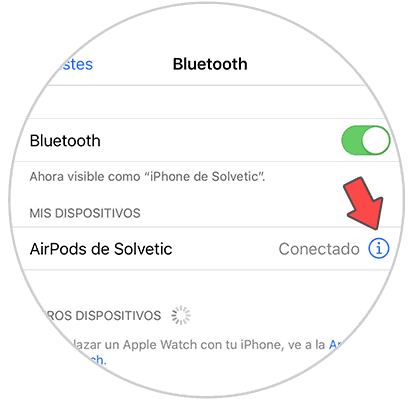Si no has configurado todavía el Oye Siri en tu iPhone tendrás que ir al menú de Ajustes – Bluetooth para configurarlo. Pulsa en la i de información.