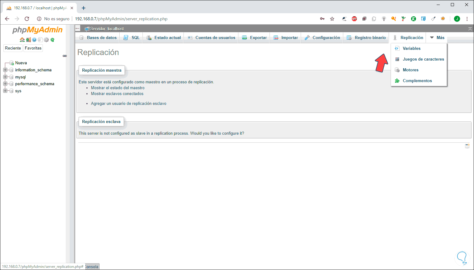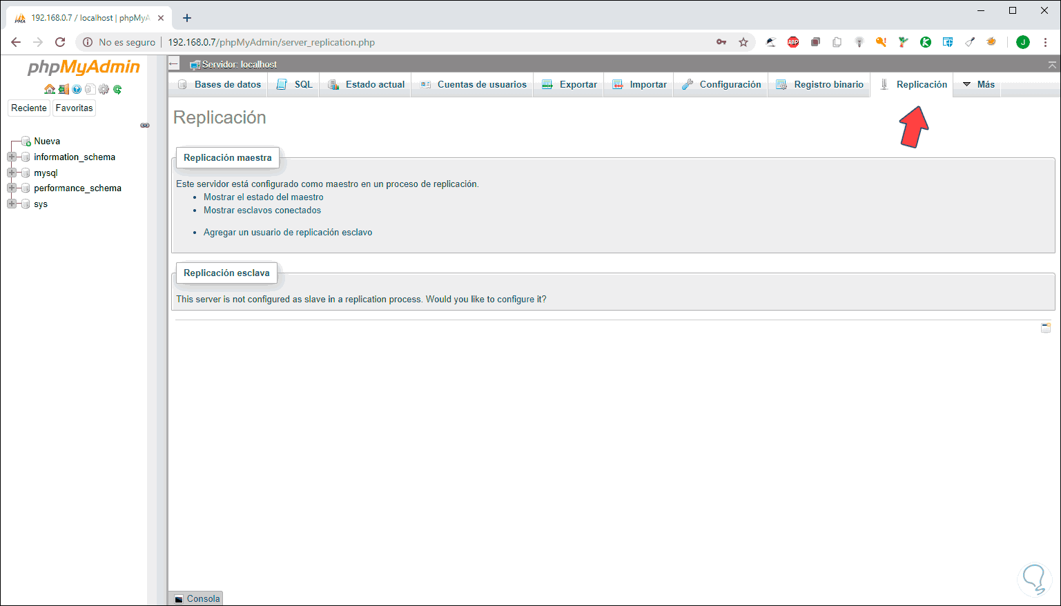 En la pestaña “Replicación” contamos con la forma de ejecutar la replicación de la base de datos:
