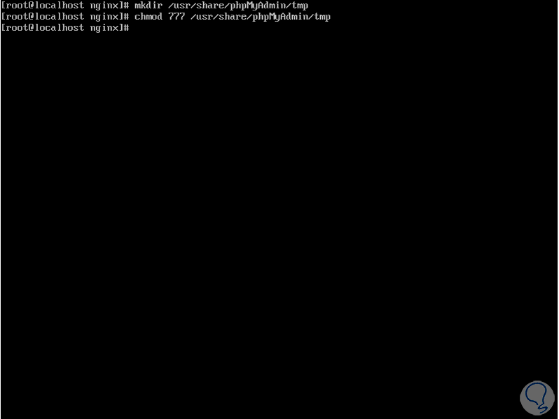 Ahora ejecutaremos lo siguiente con lo cual se creará un directorio temporal de phpMyAdmin y procedemos a otorgar los respectivos permisos: