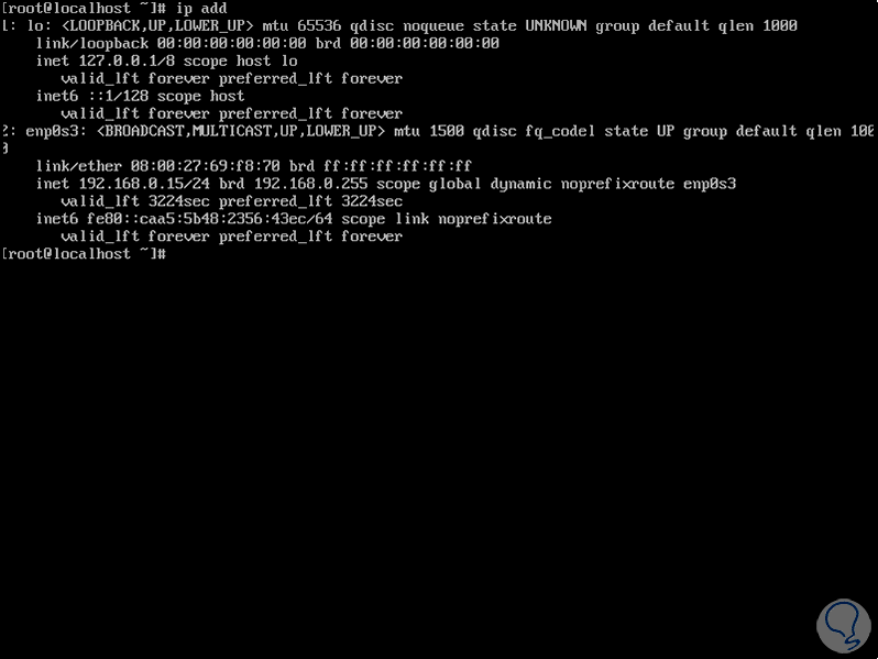 Para comprobar que Apache funciona de la forma esperada, debemos conocer la IP del servidor, esta la podemos encontrar con el comando “ip add”: