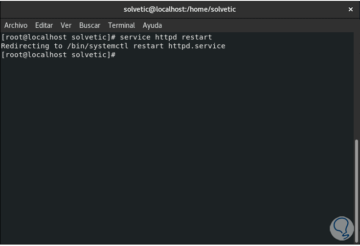 Finalmente reiniciamos el servicio de Apache: