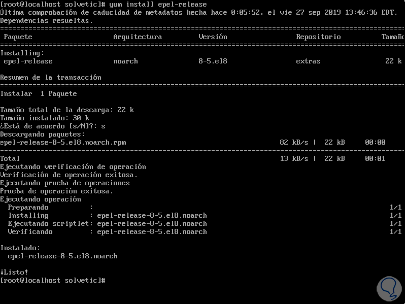 2. Instalar los repositorios EPEL en CentOS 8