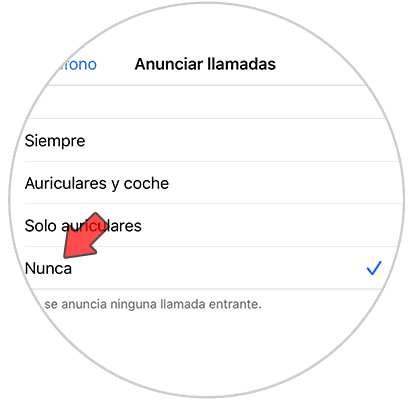 De este modo cuando te llamen Siri ya no dirá en alto el nombre de la persona que aparece en tu pantalla. En el caso de que quieras volver a activar esto, debes seguir los mismos pasos, pero seleccionando “siempre”.