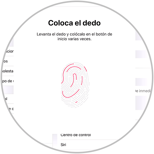 Ahora seguiremos el proceso que se indica colocando el dedo y moviéndolo para un buen registro.