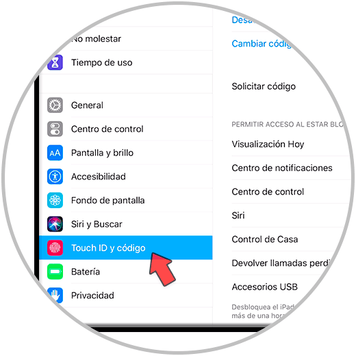 A continuación, entraremos en la categoría de “Touch ID y código” pulsando sobre ella.